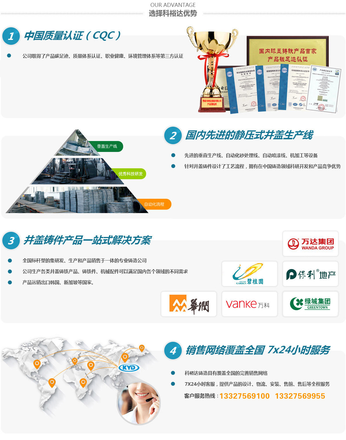 晉城市科裕達鑄造有限公司,位于山西省晉城市南村鎮(zhèn)智能綠色鑄造創(chuàng)新產業(yè)園區(qū),成立于2014年2月,注冊資金2億元整,產量10萬噸。經過這些來的發(fā)展,已經成為全國集研發(fā)、生產、銷售各類球墨鑄鐵井蓋、箅子產品于一體的專業(yè)鑄造公司,是已知國內較大的球墨鑄鐵井蓋生產基地。2016年10月,公司順利通過了二級安全生產標準化的評審,正式成為一家二級安全生產標準化企業(yè)。2017年3月,山西省安全生產監(jiān)督管理局授予公司2016年冶金工貿行業(yè)“安全生產先進單位”稱號。2017年11月被山西省中小企業(yè)局授予“專精特新”中小企業(yè)榮譽。2020年8月被認定為國家高新技術企業(yè)。2021年5月被中國鑄造協(xié)會認定為“單項冠軍企業(yè)”。2021年9月被山西省中小企業(yè)局授予“專精特新小巨人”企業(yè)榮譽。2022年被中國鑄造協(xié)會認定為第四屆鑄造行業(yè)排頭兵企業(yè)。2023年7月被工信部認定為“國家級專精特新小巨人”企業(yè)榮譽。2024年被省工信廳認定有“省級綠色工廠”及“省級企業(yè)技術中心”。
